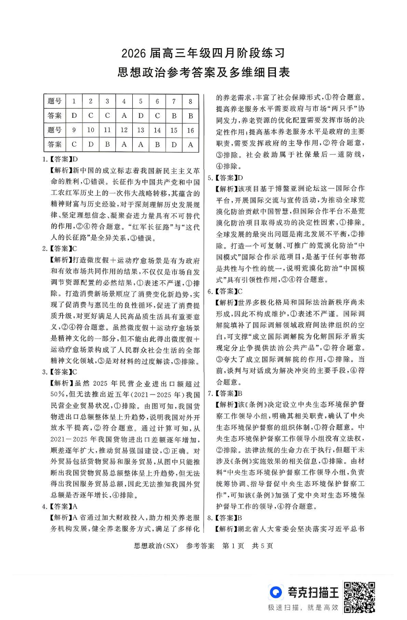 2026届高三年级四月阶段练习 政治(SX)答案.pdf
