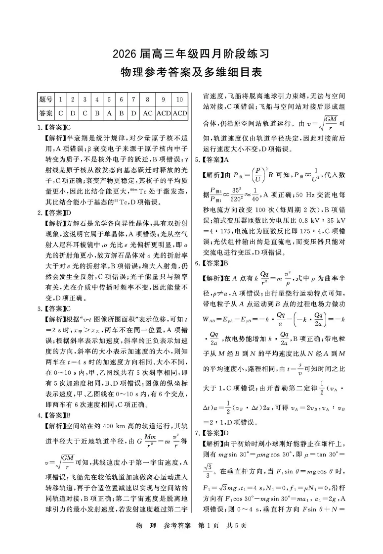 2026届高三年级四月阶段练习 物理答案.pdf