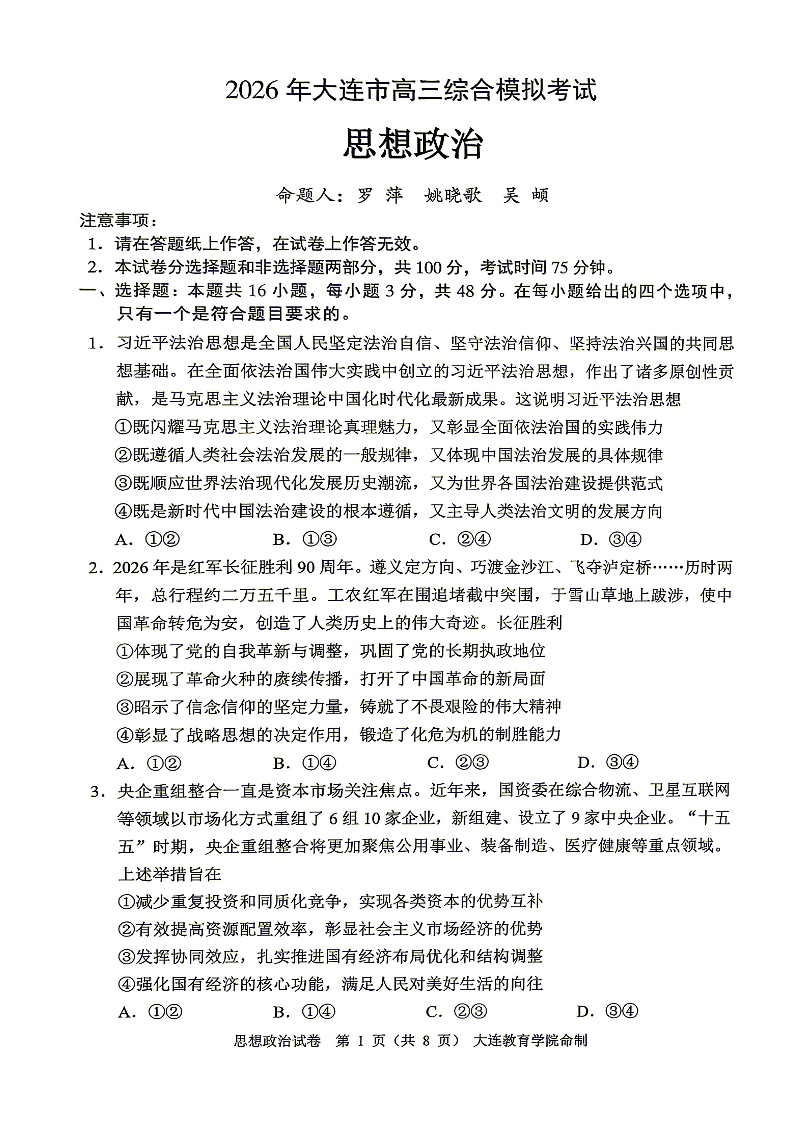 2026年大连市高三综合模拟考试 政治.pdf
