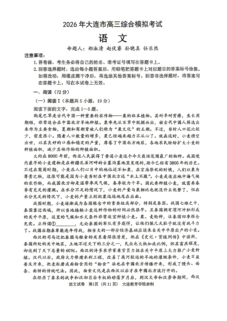 2026年大连市高三综合模拟考试 语文.pdf