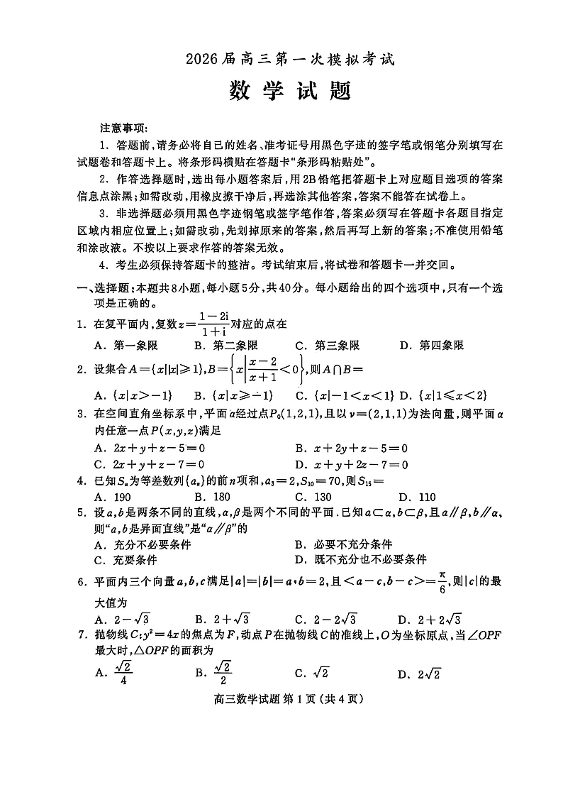 河北省保定市2026届高三年级第一次模拟考试 数学.pdf