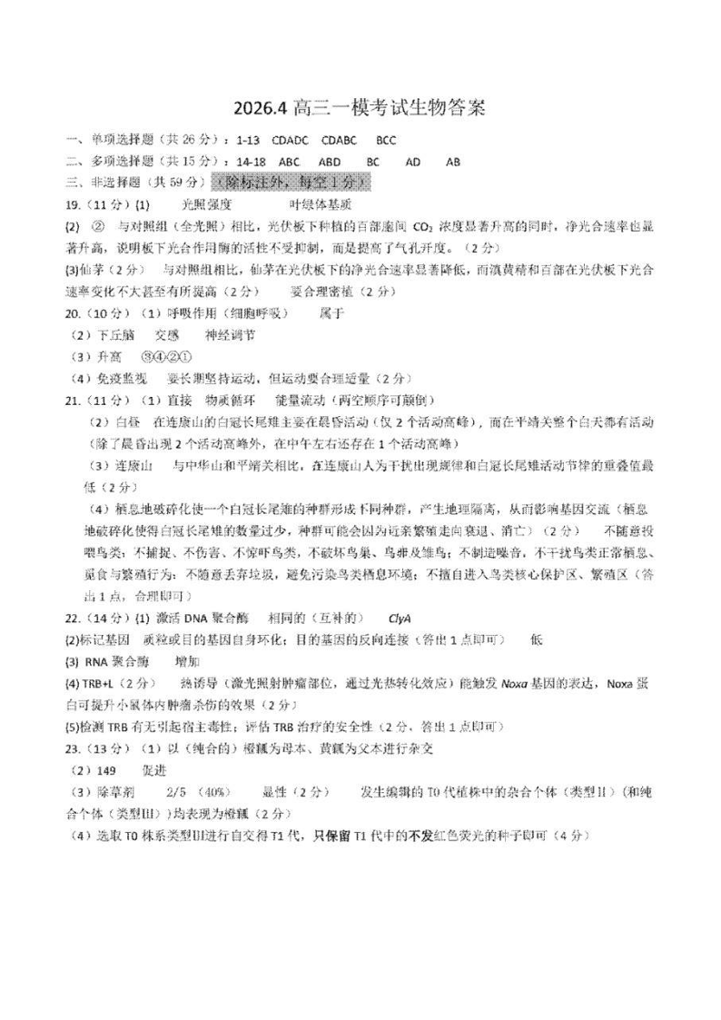 河北省保定市2026届高三年级第一次模拟考试 生物答案.pdf