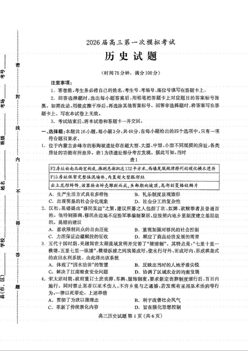河北省保定市2026届高三年级第一次模拟考试 历史.docx