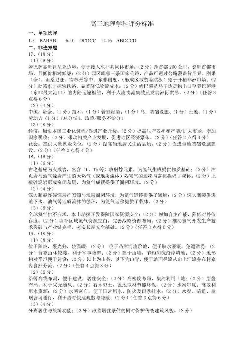 河北省保定市2026届高三年级第一次模拟考试 地理答案.pdf