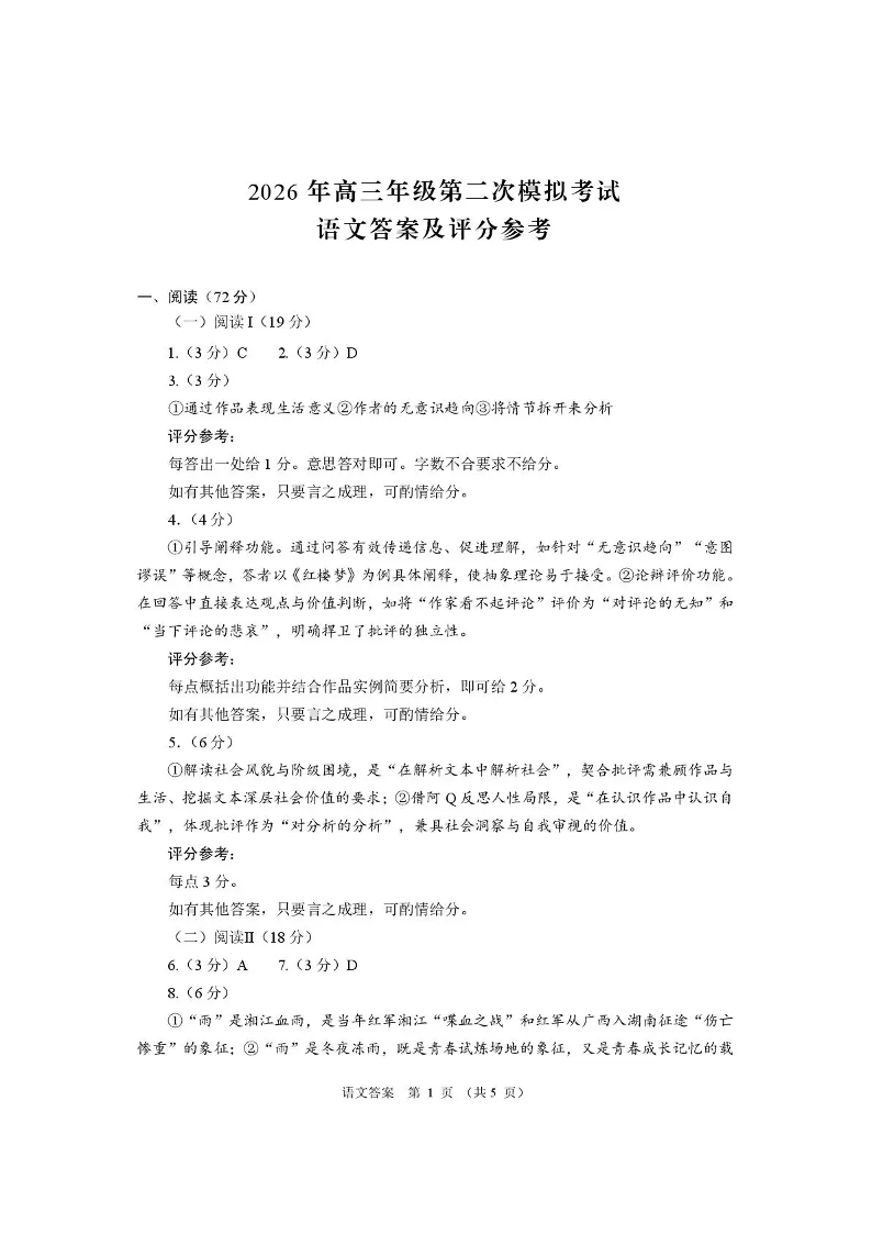 2026年高三年级第二次模拟考试试题 语文答案.pdf
