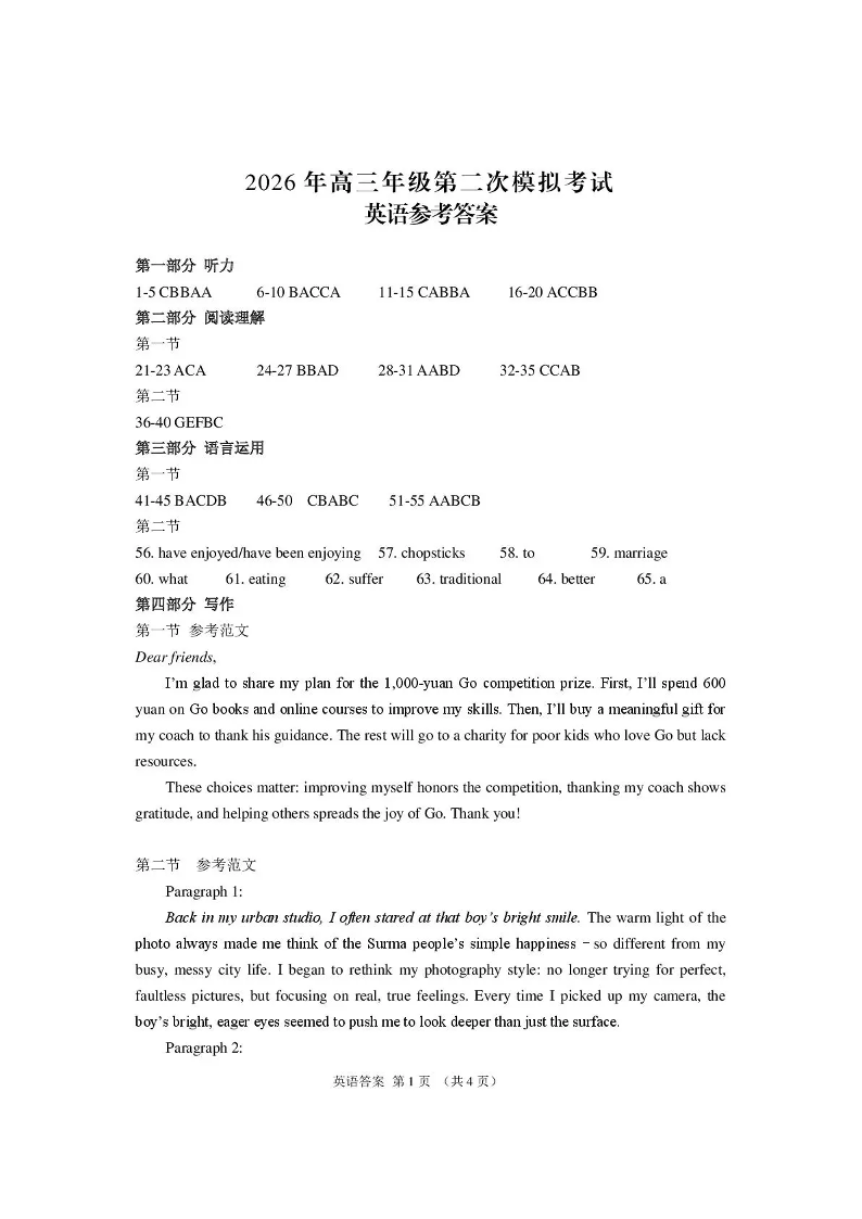 2026年高三年级第二次模拟考试试题 英语答案.pdf