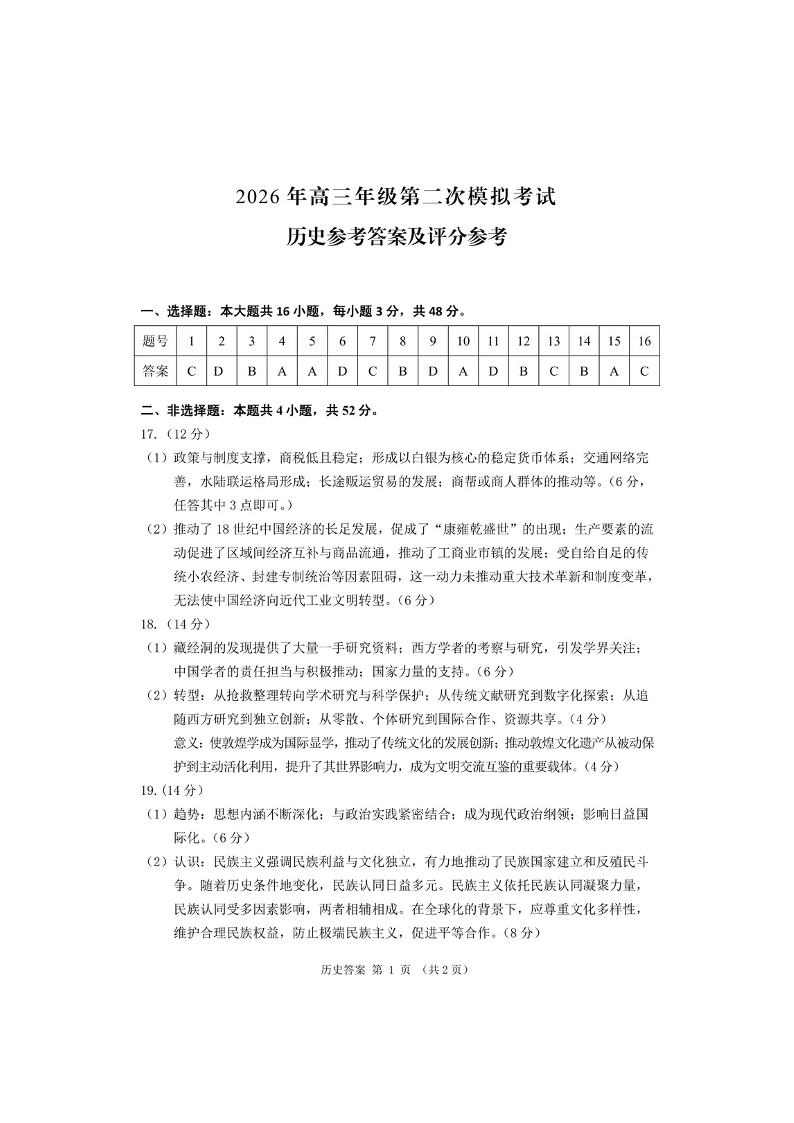 2026年高三年级第二次模拟考试试题 历史答案.pdf