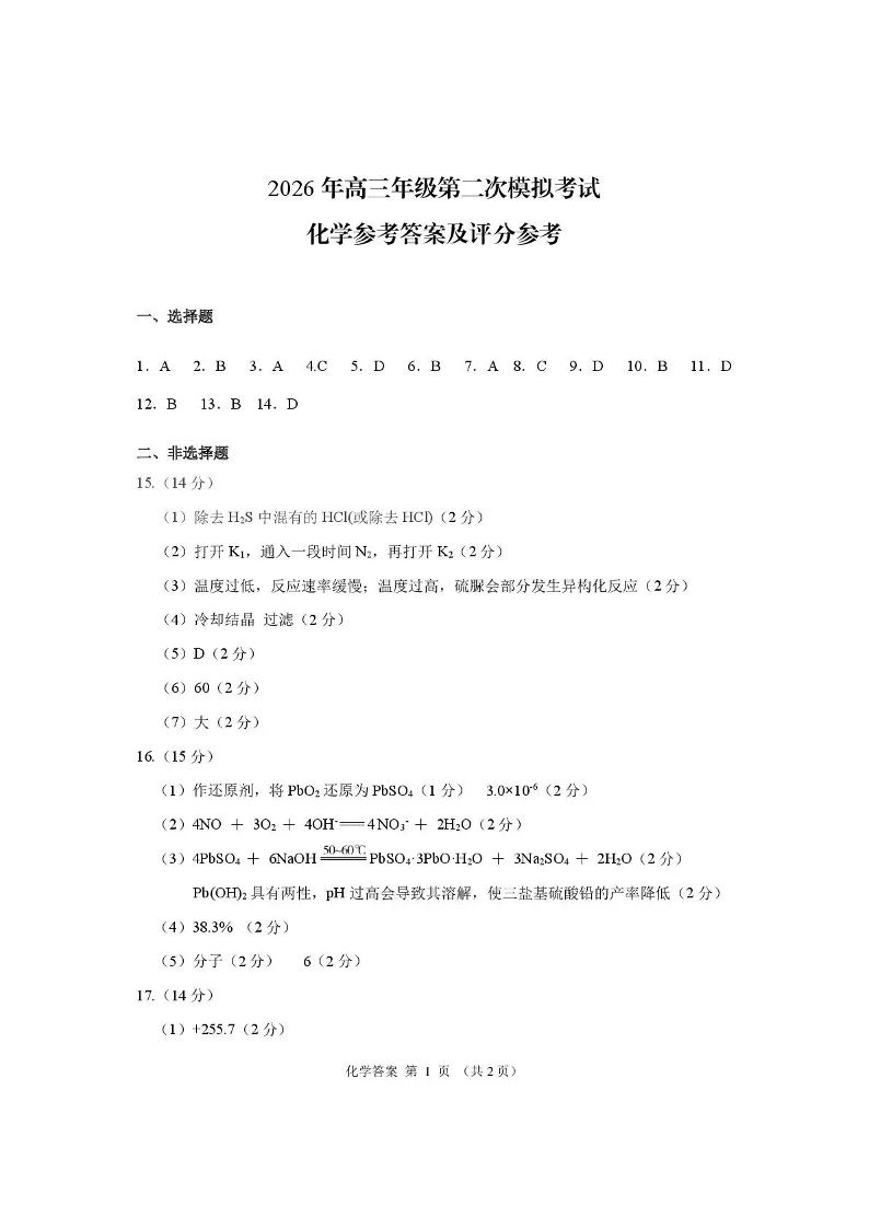 2026年高三年级第二次模拟考试试题 化学答案.pdf