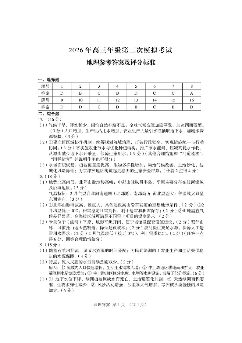 2026年高三年级第二次模拟考试试题 地理答案.pdf