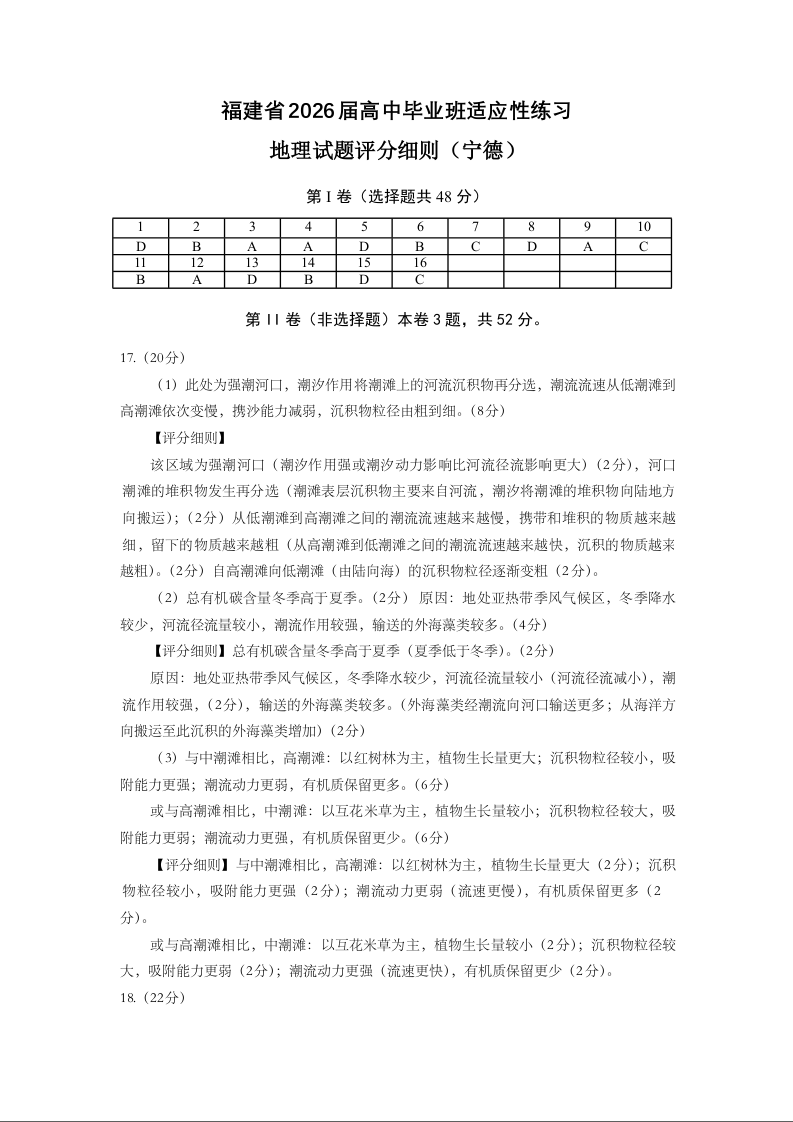 2026届高中毕业班适应性练习 地理答案.docx