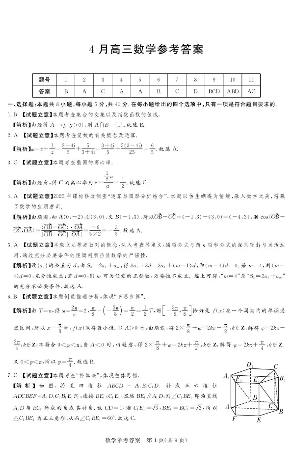 2025-2026学年高三下学期四月阶段检测 数学答案.pdf