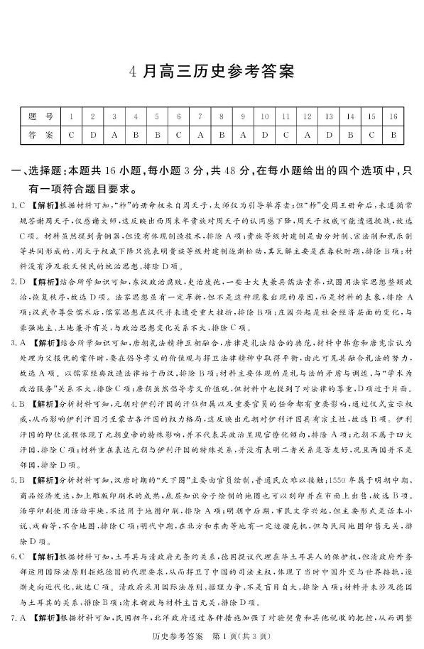 2025-2026学年高三下学期四月阶段检测 历史答案.pdf