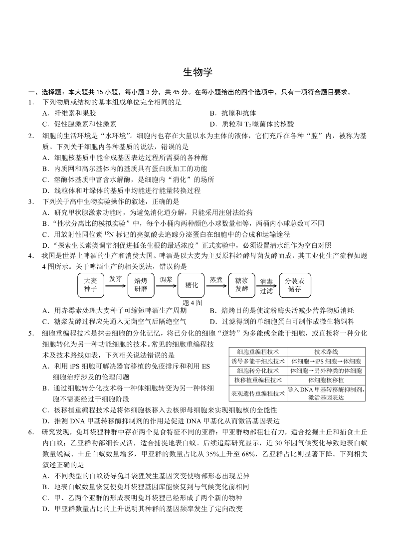 重庆市2026年普通高等学校招生全国统一考试(康德二诊)生物试题(含答案).pdf
