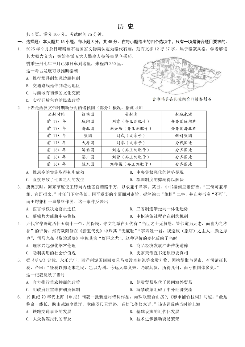 重庆市2026年普通高等学校招生全国统一考试(康德二诊)历史试题(含答案).pdf