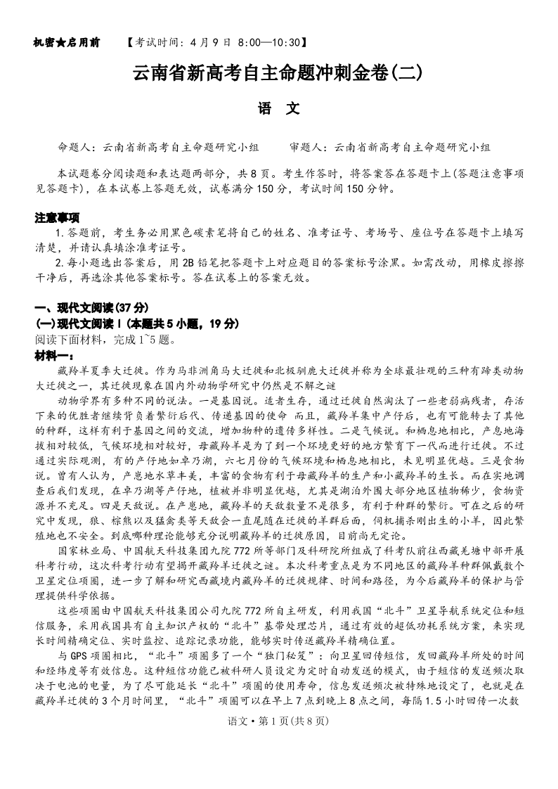 云南省新高考自主命题冲刺金卷(二)语文试题(含答案).pdf