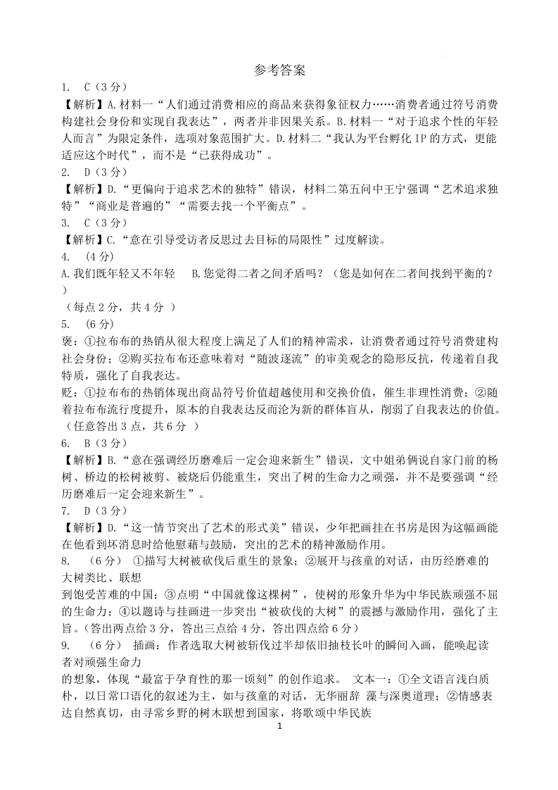 山西大学附属中学校2026届高三下学期4月阶段检测 语文答案.docx