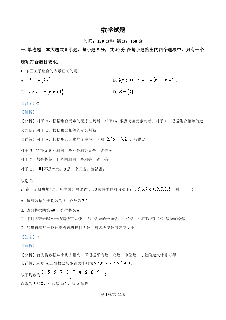 山西大学附属中学校2026届高三下学期4月阶段检测 数学答案.docx