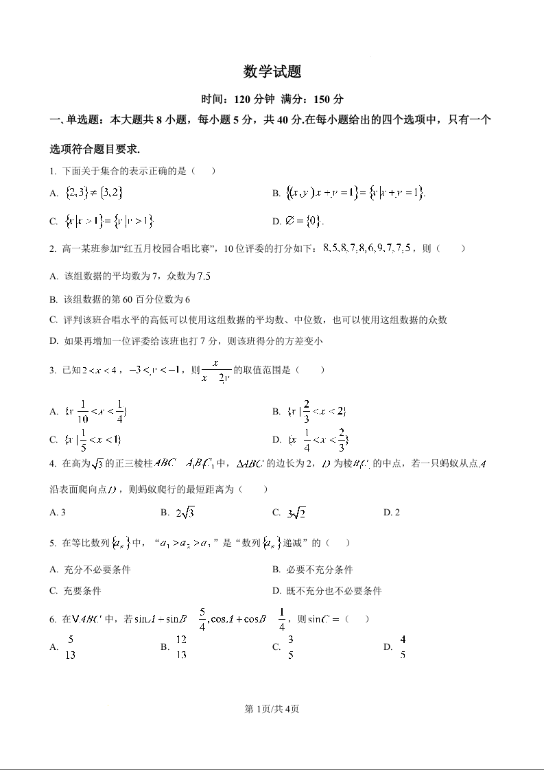 山西大学附属中学校2026届高三下学期4月阶段检测 数学.docx