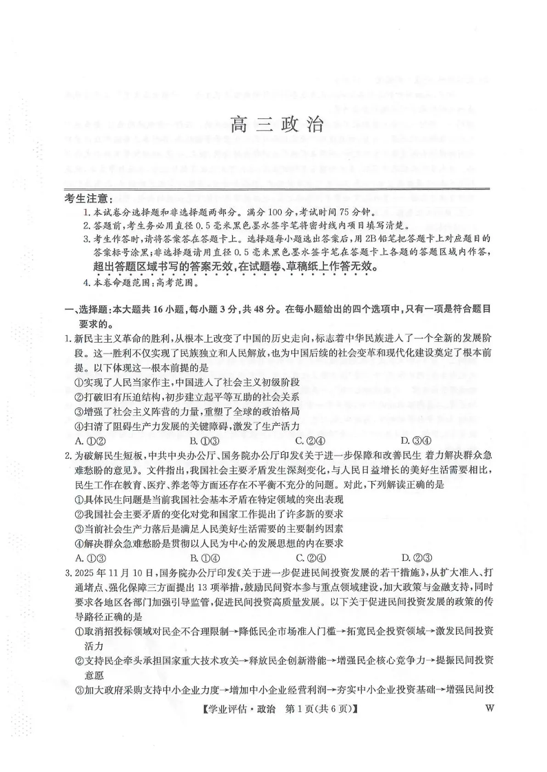 九师联盟2026届高三下学期4月学业评估 政治.pdf