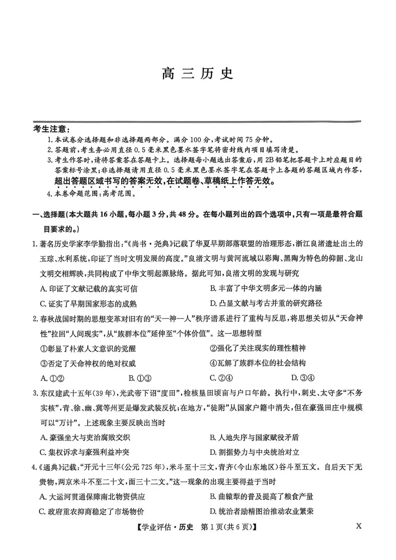 九师联盟2026届高三下学期4月学业评估 历史.pdf