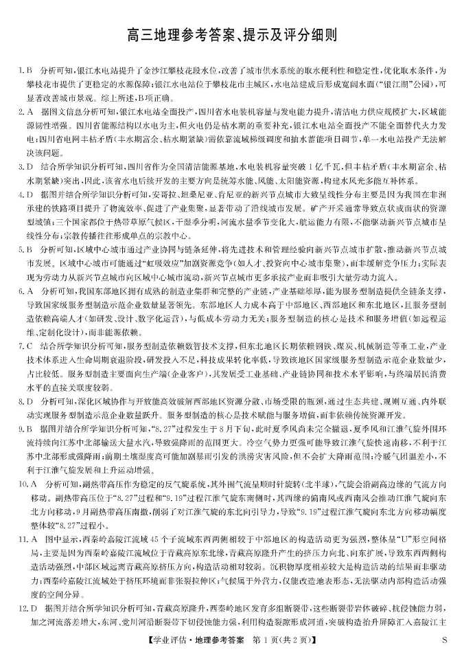 九师联盟2026届高三下学期4月学业评估 地理答案.pdf