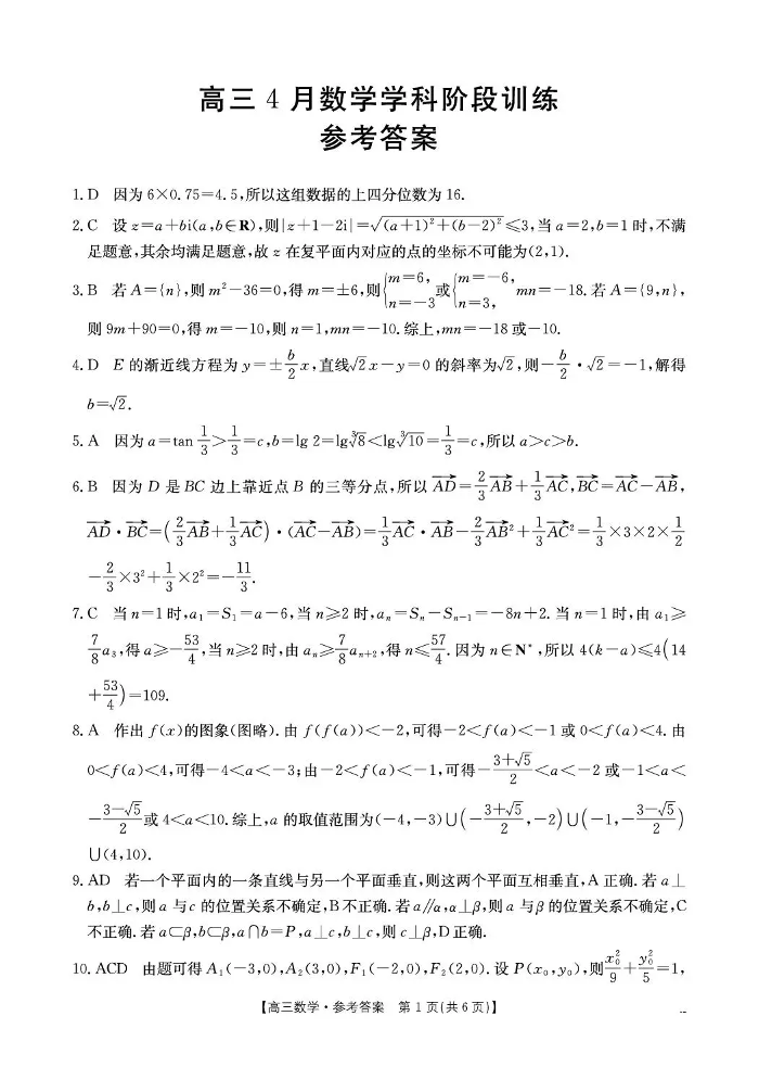 江西“三新”协同教研共同体2026届高三4月学科阶段训练 数学答案.pdf
