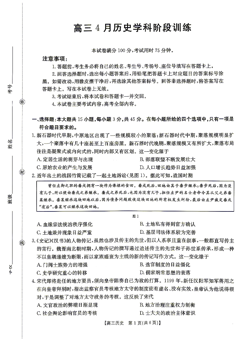 江西“三新”协同教研共同体2026届高三4月学科阶段训练 历史.pdf