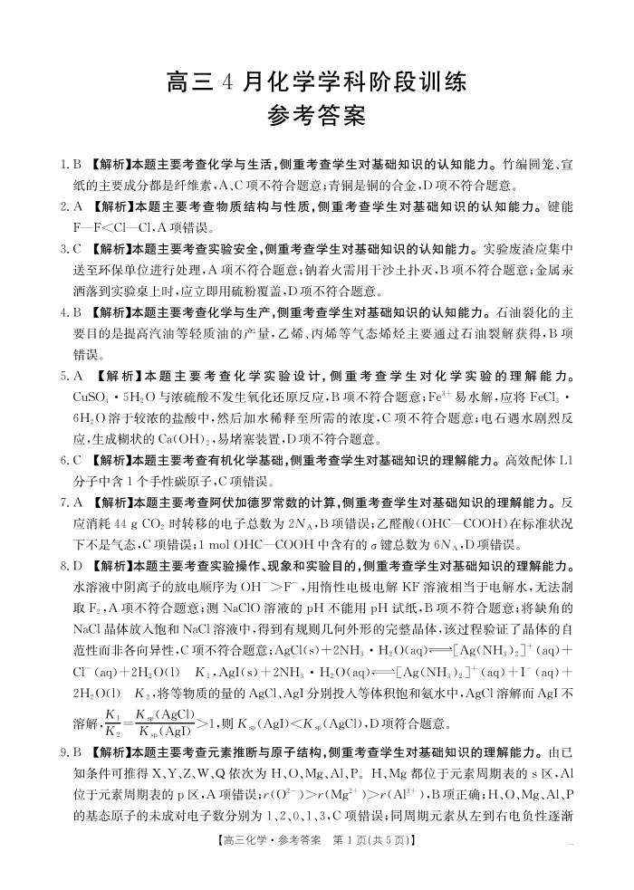 江西“三新”协同教研共同体2026届高三4月学科阶段训练 化学答案.pdf