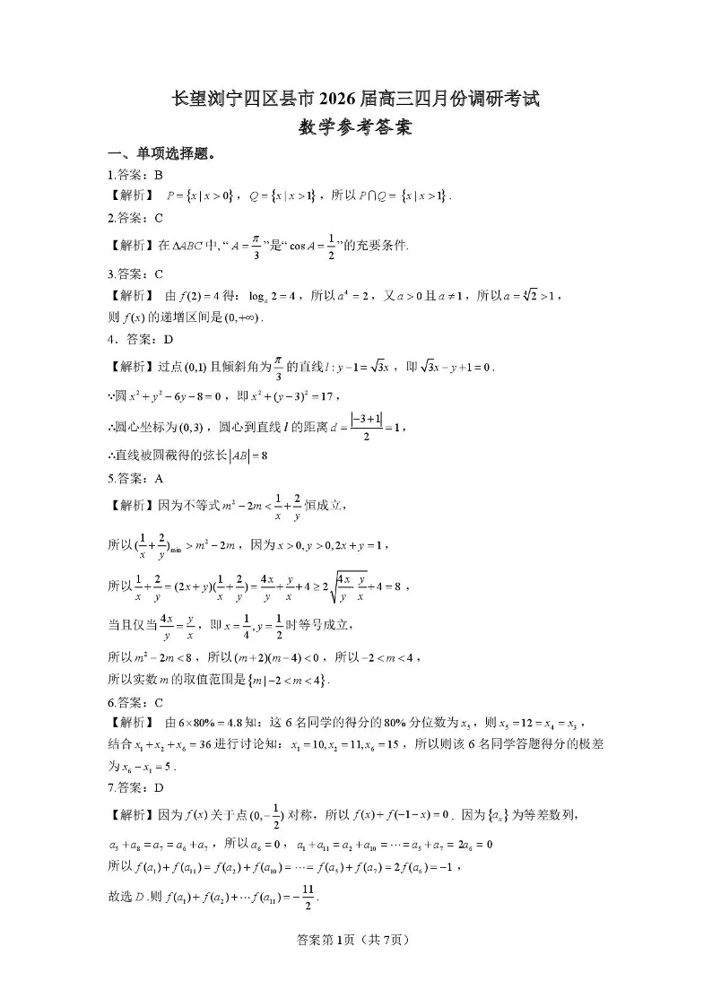 长望浏宁四区县市2026届高三四月份调研考试 数学答案.pdf