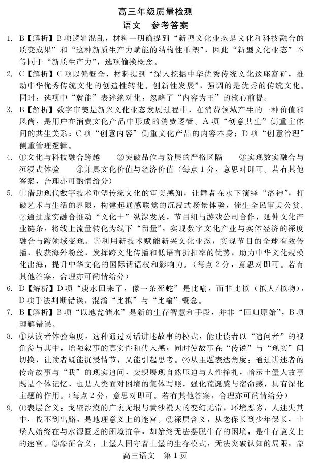 邢台市卓越联盟2026届高三下4月质量检测 语文答案.pdf