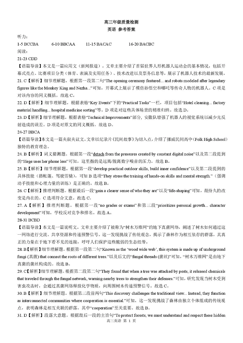 邢台市卓越联盟2026届高三下4月质量检测 英语答案.pdf