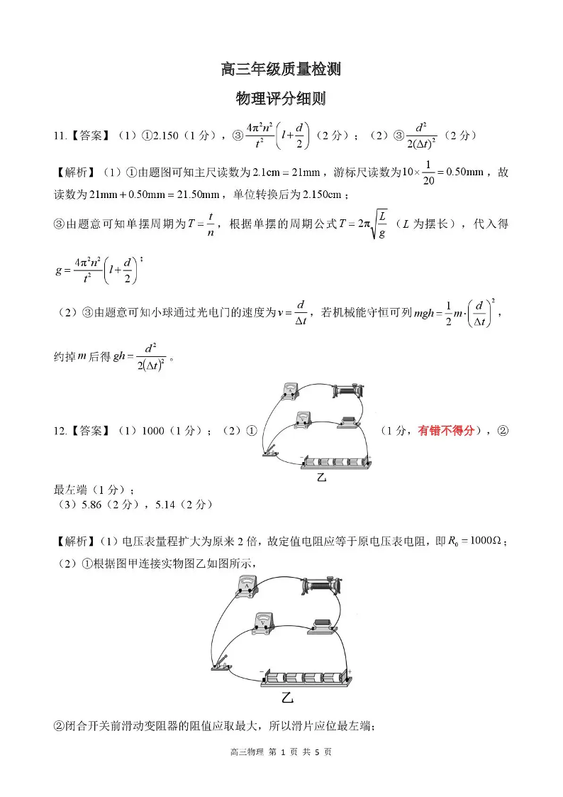 邢台市卓越联盟2026届高三下4月质量检测 物理评分细则.pdf