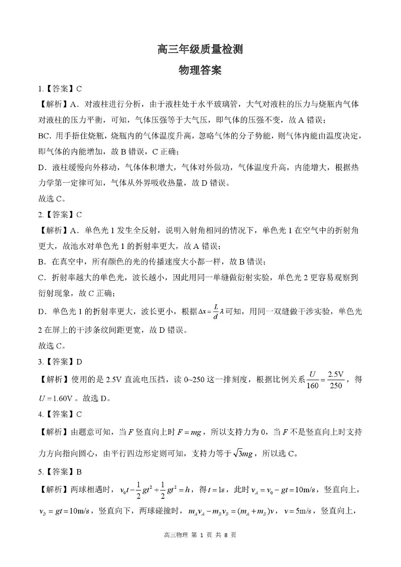 邢台市卓越联盟2026届高三下4月质量检测 物理答案.pdf
