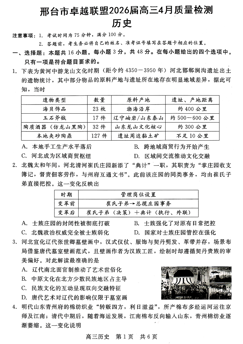 邢台市卓越联盟2026届高三下4月质量检测 历史.pdf