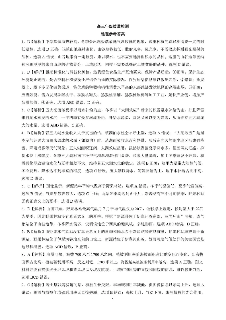 邢台市卓越联盟2026届高三下4月质量检测 地理答案.pdf