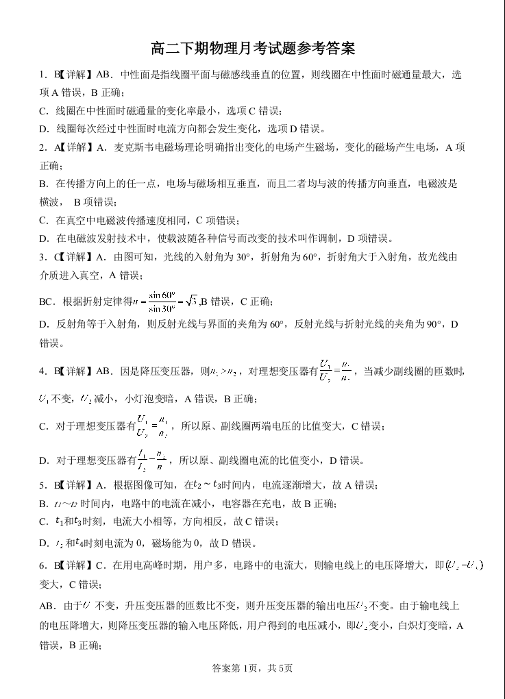 四川省遂宁市射洪中学2025-2026学年高二下学期第一次月考 物理答案.docx