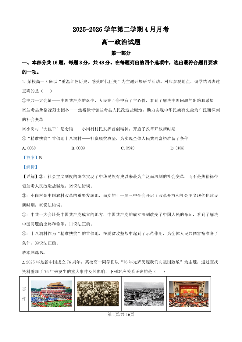 山西省晋城一中2025-2026学年高一下学期4月月考 政治答案.pdf