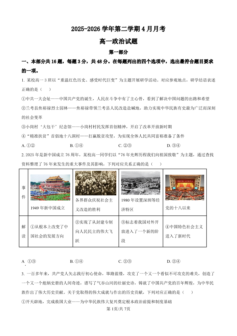 山西省晋城一中2025-2026学年高一下学期4月月考 政治.pdf