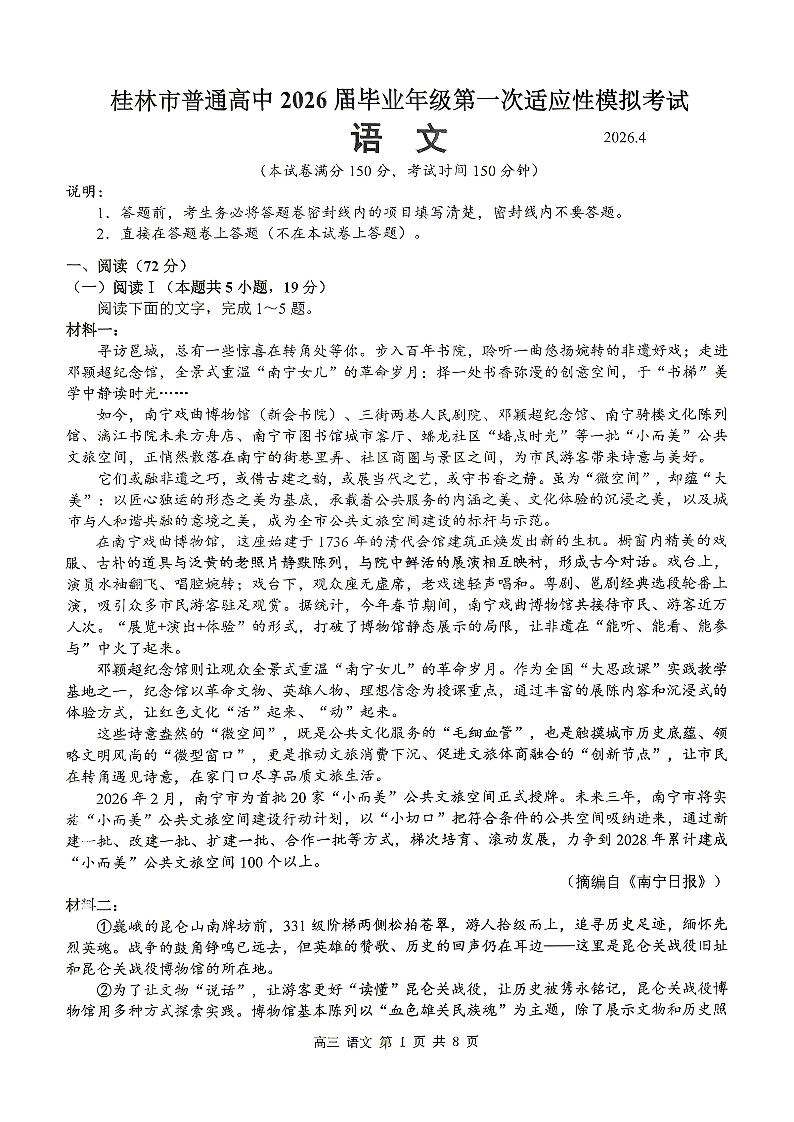 桂林市普通高中2026届毕业年级第一次适应性模拟考试 语文.pdf