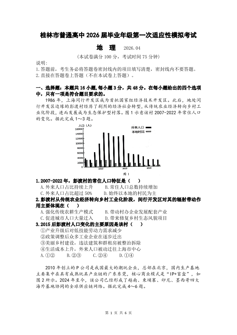 桂林市普通高中2026届毕业年级第一次适应性模拟考试 地理.pdf