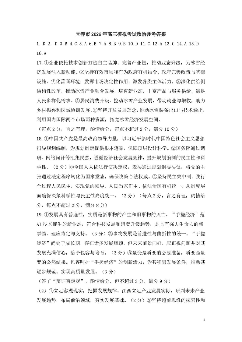 江西省宜春市2026年高三4月模拟考试 政治答案.pdf