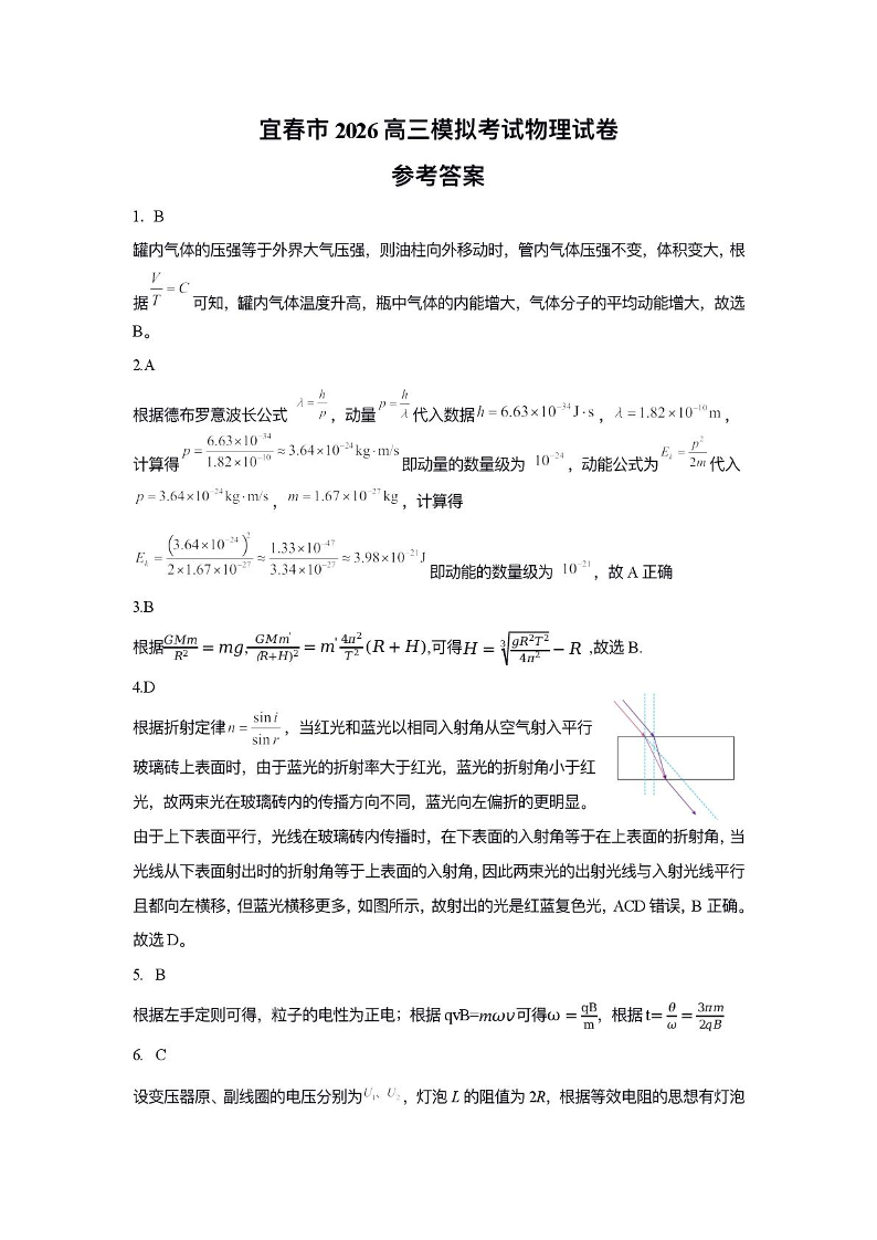 江西省宜春市2026年高三4月模拟考试 物理答案.pdf
