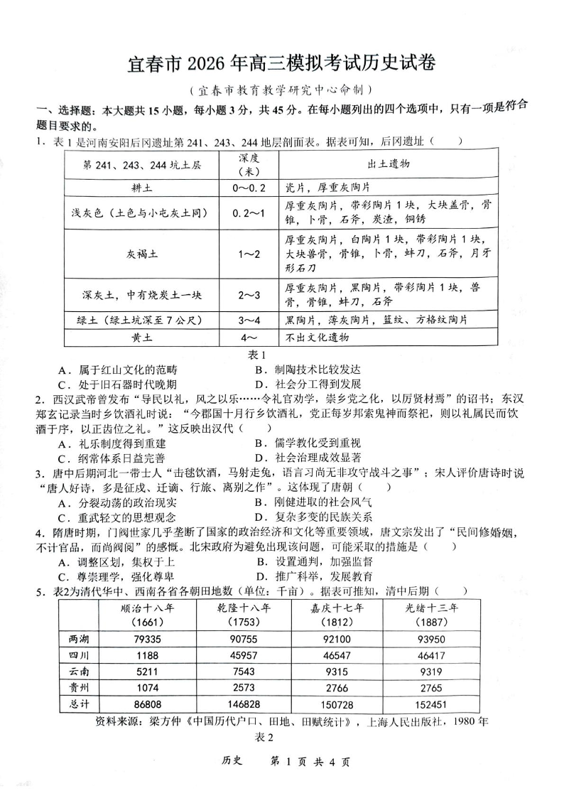 江西省宜春市2026年高三4月模拟考试 历史.pdf