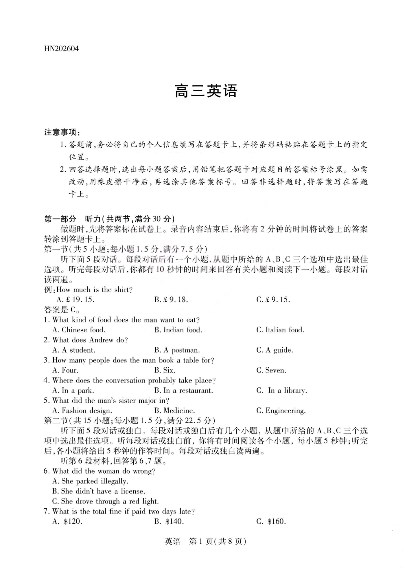 山西省2026届高三天一小高考素质评价(五)英语.pdf