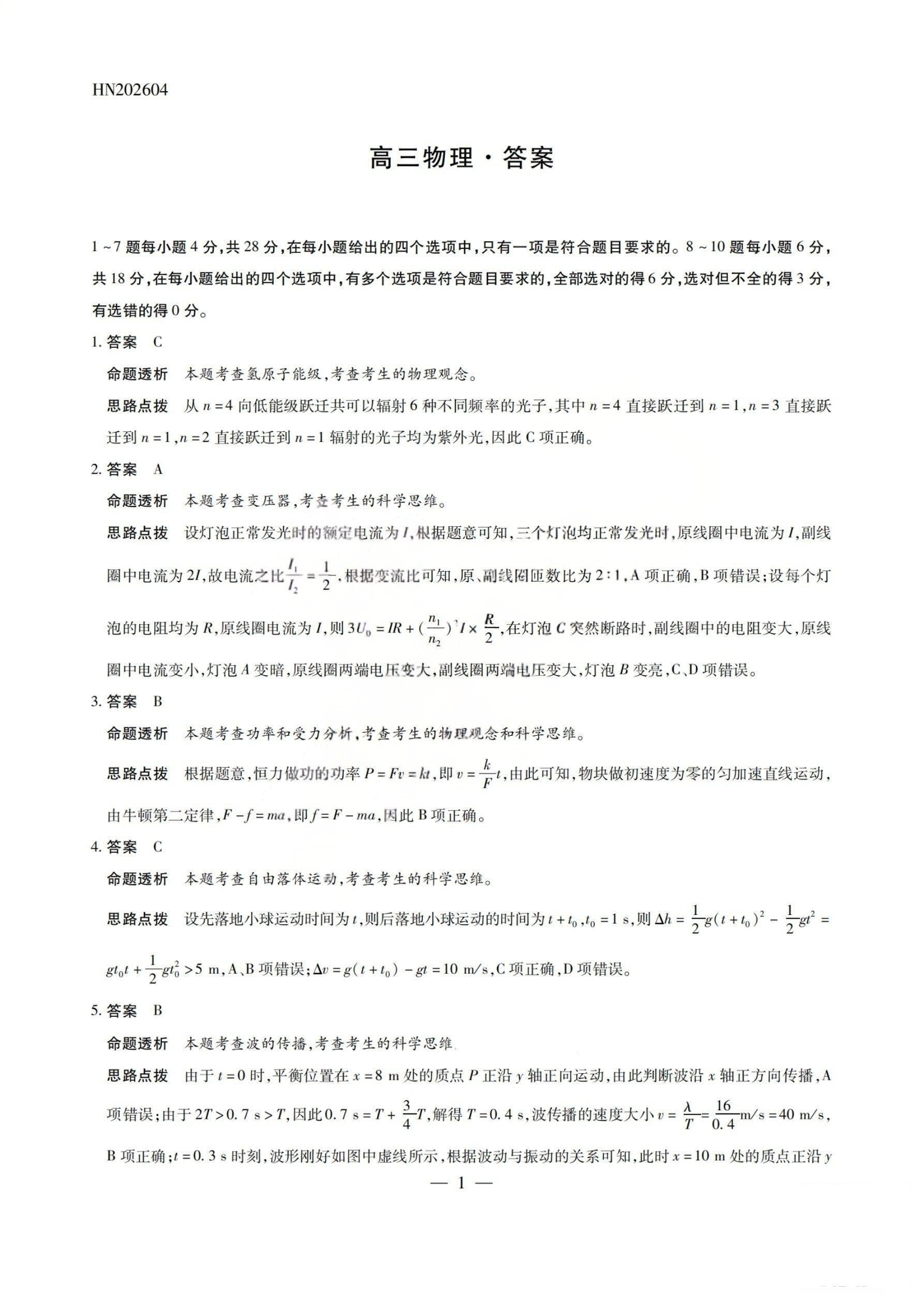 山西省2026届高三天一小高考素质评价(五)物理答案.pdf