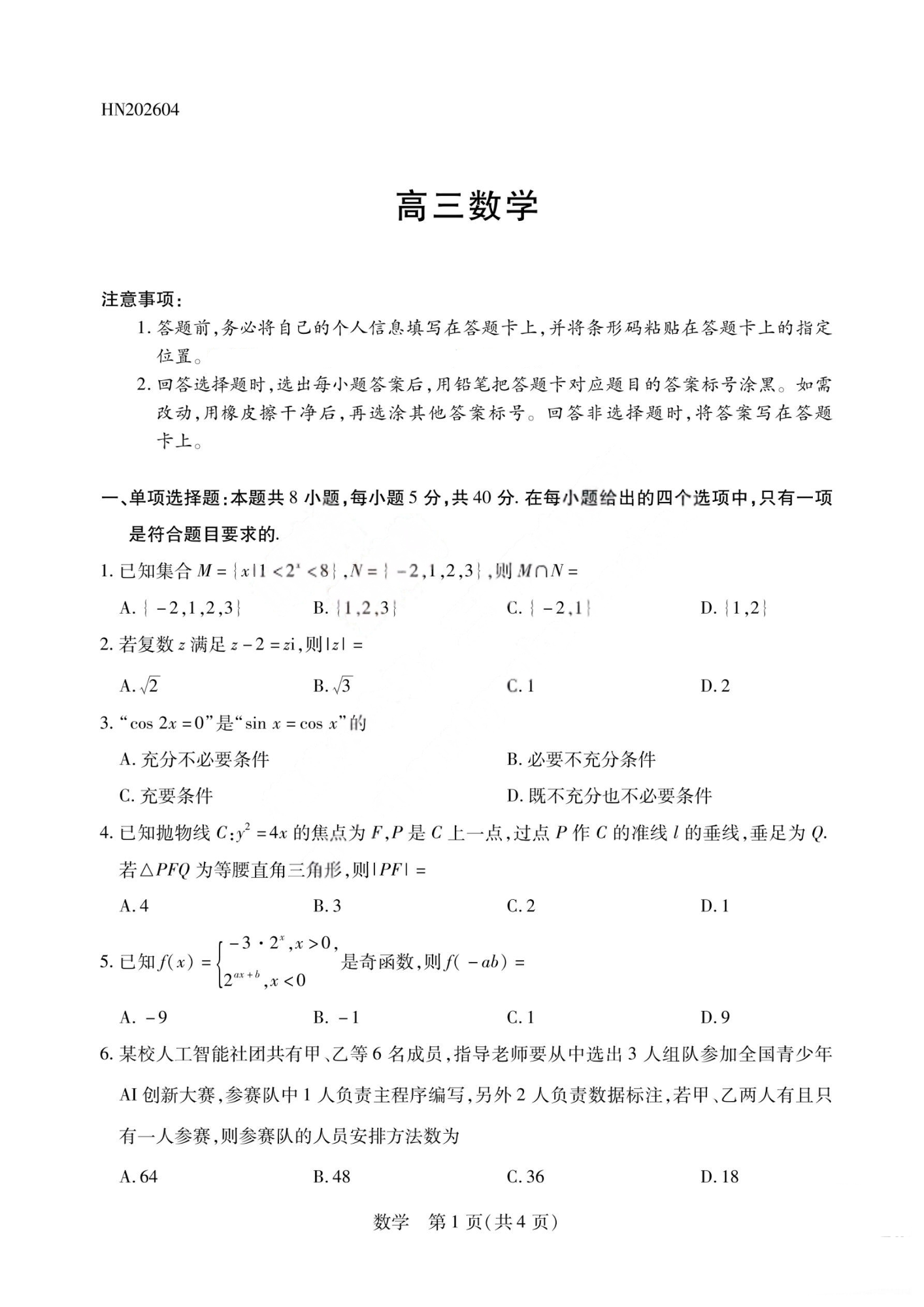 山西省2026届高三天一小高考素质评价(五)数学.pdf