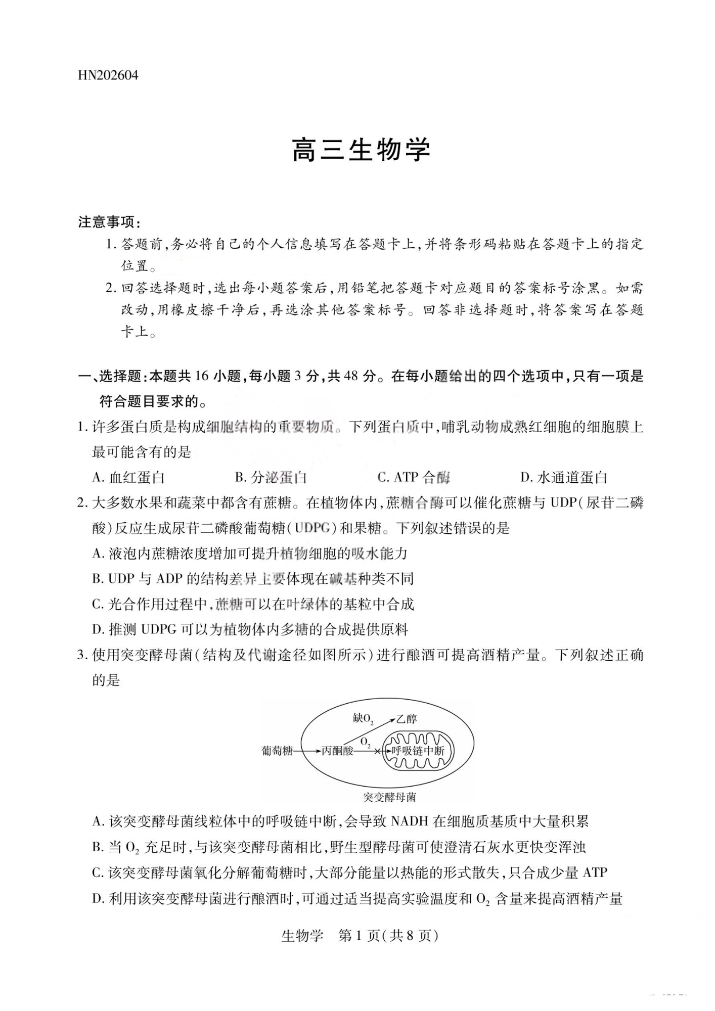 山西省2026届高三天一小高考素质评价(五)生物.pdf