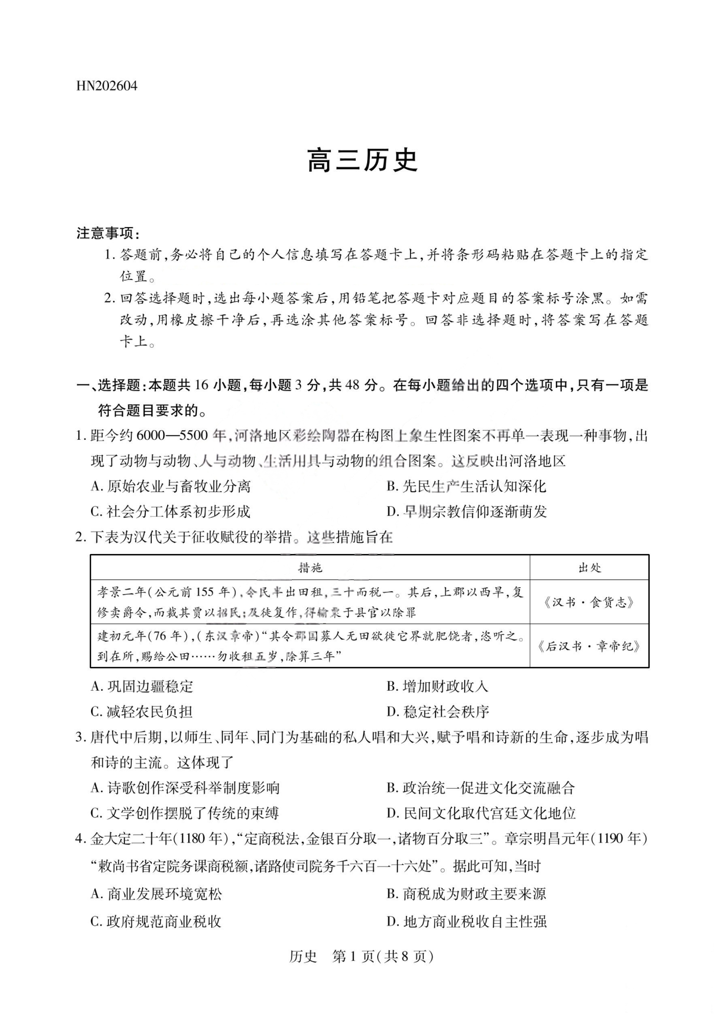 山西省2026届高三天一小高考素质评价(五)历史.pdf