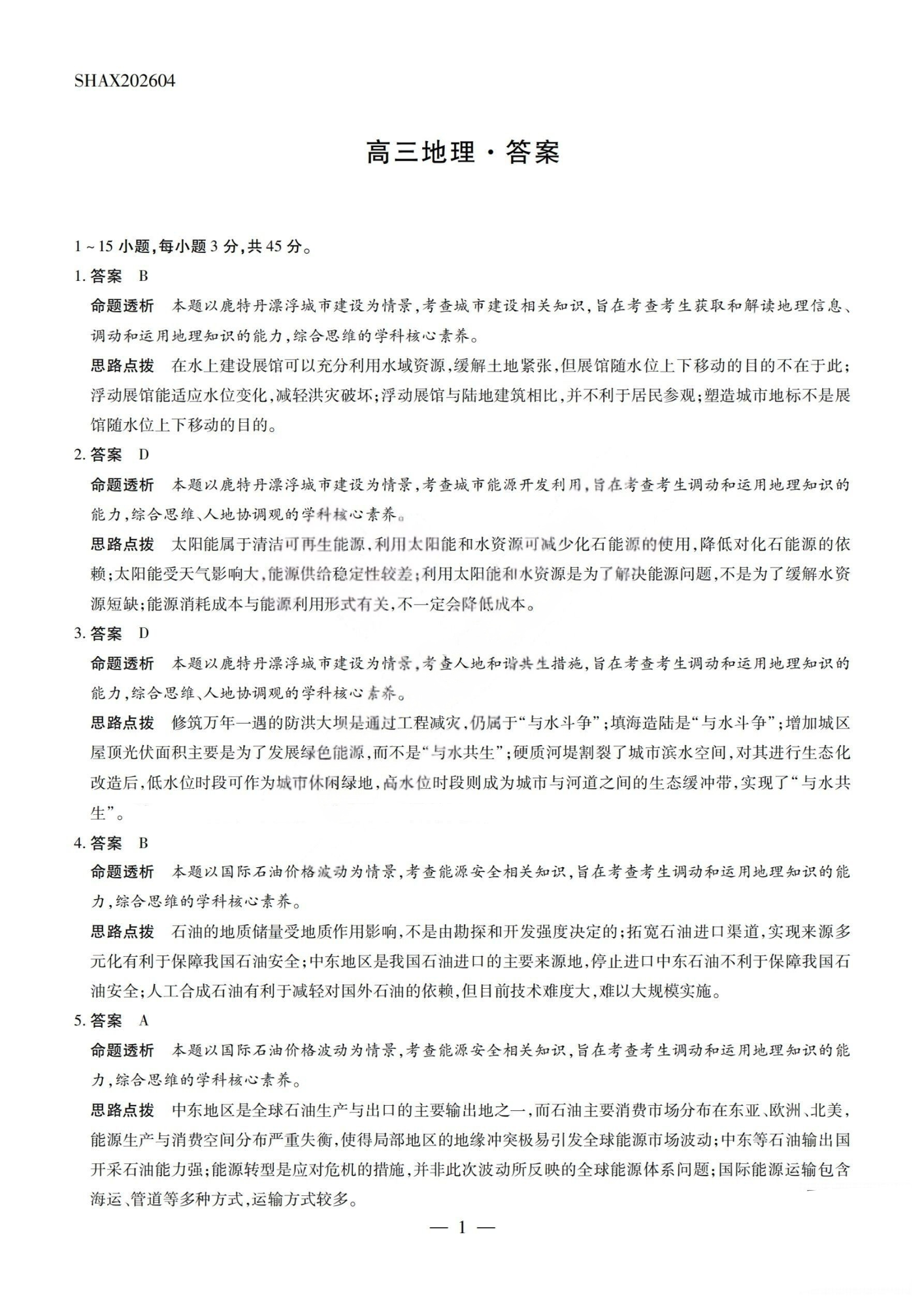 山西省2026届高三天一小高考素质评价(五)地理答案.pdf