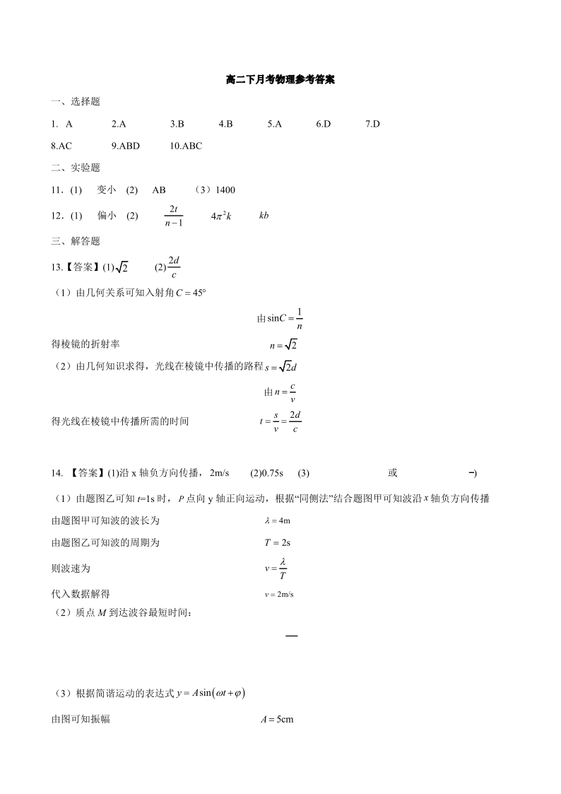 哈三中2025-2026学年度下学期高二学年4月月考 物理答案.pdf